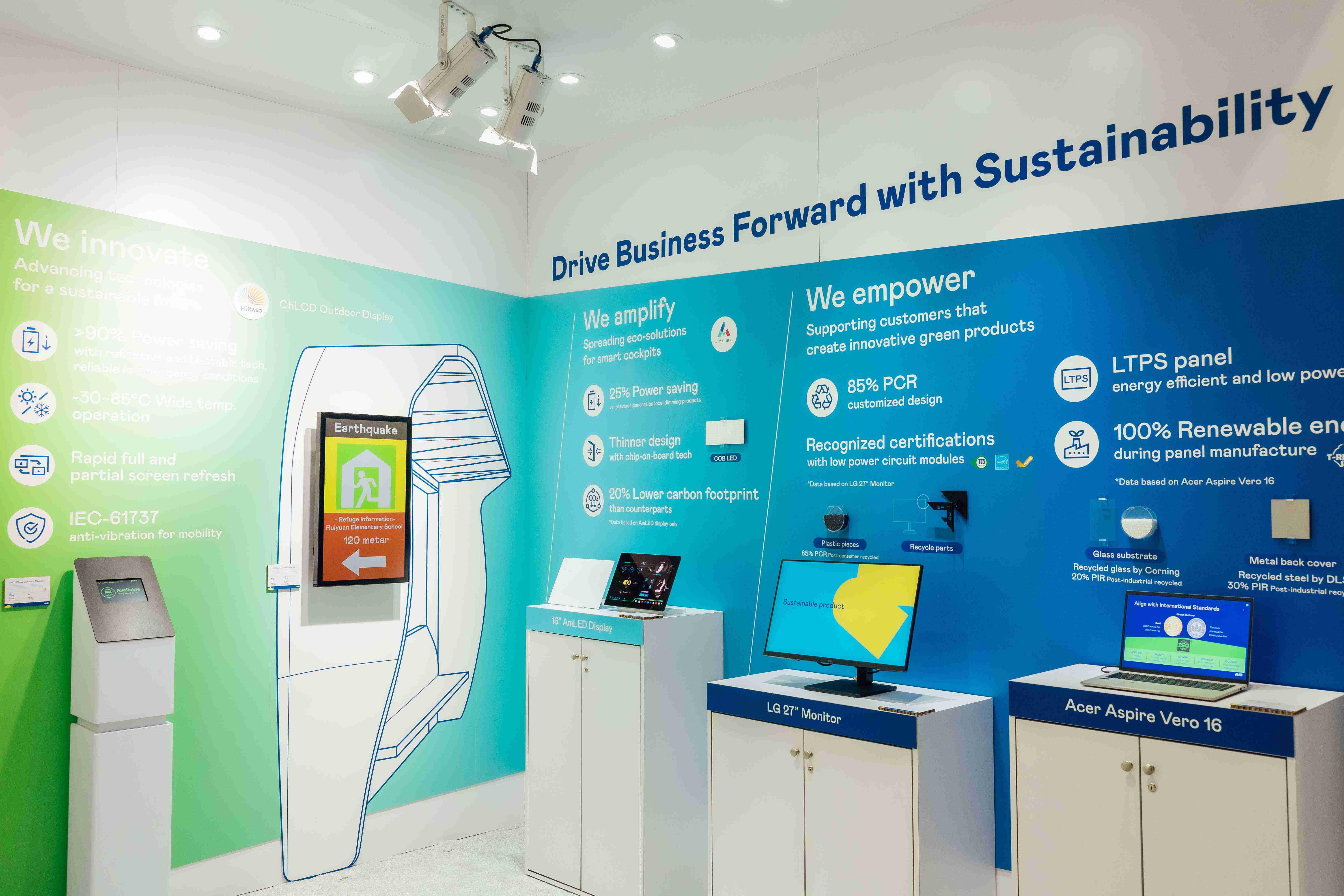 森林舞会运用创新显示技术HiRaso胆固醇液晶双稳态技术达到显示零耗能、、、扩大节能省电的AmLED显示技术应用于车用产品、、以再生的消费后回收(PCR)塑料及全绿电生产之面板,,,应用于笔电及萤幕,,增加绿色价值。。。。