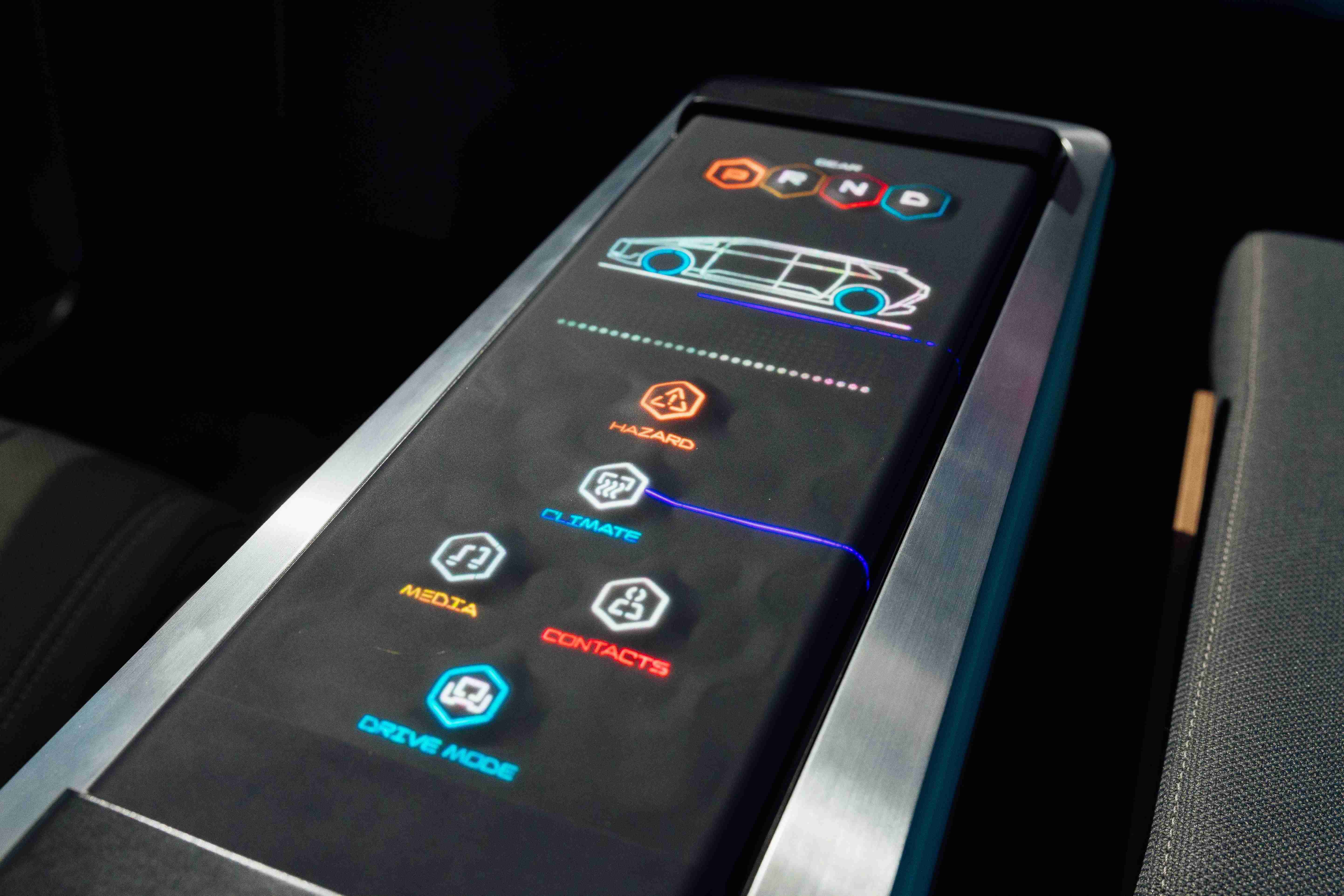 幻境全景天幕(Virtual Sky Canopy)将无缝拼接大型化的透明Micro LED显示器融入至天窗,,,,带来沉浸式体验,,将人机介面扩展至整个座舱。。 森林舞会光电以人性化的设计引领直觉式的人机互动,,,,透过多变形态中控显示(Morphing Center Control)、、隐藏式智驾介面(Foldable Cruise Pilot)等解决方案,,让乘用者依据自身需求调整、、、、控制座舱内所需功能。。。