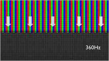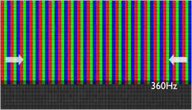 传统液晶驱动是从左到右单向进行,,,在画面更新速度愈来越愈快的情况下,,,位于驱动线路末端的右下角区域,,,画素的闸极来不及在短时间内获得足够电压,,无法显示出正确的颜色资讯。。。